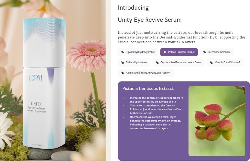 Unity Eye Revive Serum takes a completely different approach. Instead of treating symptoms on the surface, the formula is designed to strengthen the foundation beneath more specifically, the dermal-epidermal junction (DEJ). That’s the structural zone where your epidermis connects to the dermis and where early signs of aging (like sagging, thinning, and puffiness) begin.