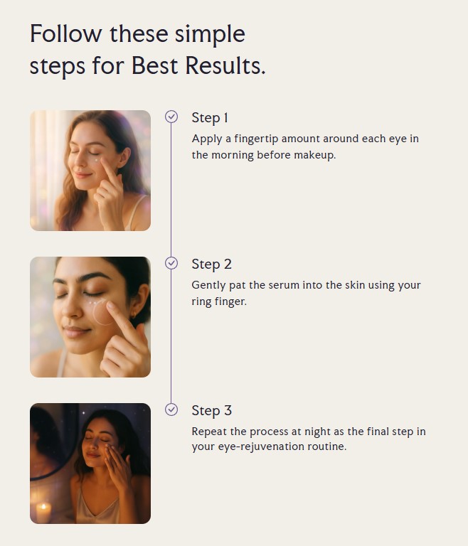 This formula really shines on tired, aging, or delicate under-eyes. It works well as a preventive step for late 20s/early 30s and as a corrective option if you're already seeing signs of fatigue or sagging.